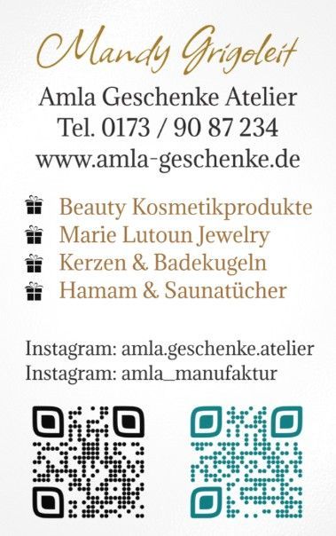 Entdecken Sie bei uns im Amla Geschenke Atelier die Welt exquisiter, handgefertigter Produkte, die Herz und Sinne erfreuen. Wir bieten Ihnen eine liebevoll kuratierte Auswahl an außergewöhnlichen Geschenken, die für jeden Anlass perfekt sind. Ob Sie eine besondere Aufmerksamkeit suchen oder sich selbst eine Freude machen möchten – bei uns finden Sie garantiert das Richtige.